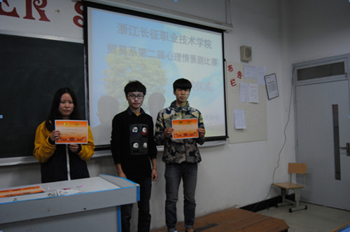比赛时,演员们精心的准备、精彩用心的表演以及每个剧所要传达的深刻涵义,都给观众与评委们留下了深刻印象。经过激烈的角逐和公平的审判,13国贸5班以“梦醒”为主题的心理剧夺得桂冠,13国际商务班获得二等奖,13国贸2班和13报关班获得三等奖。