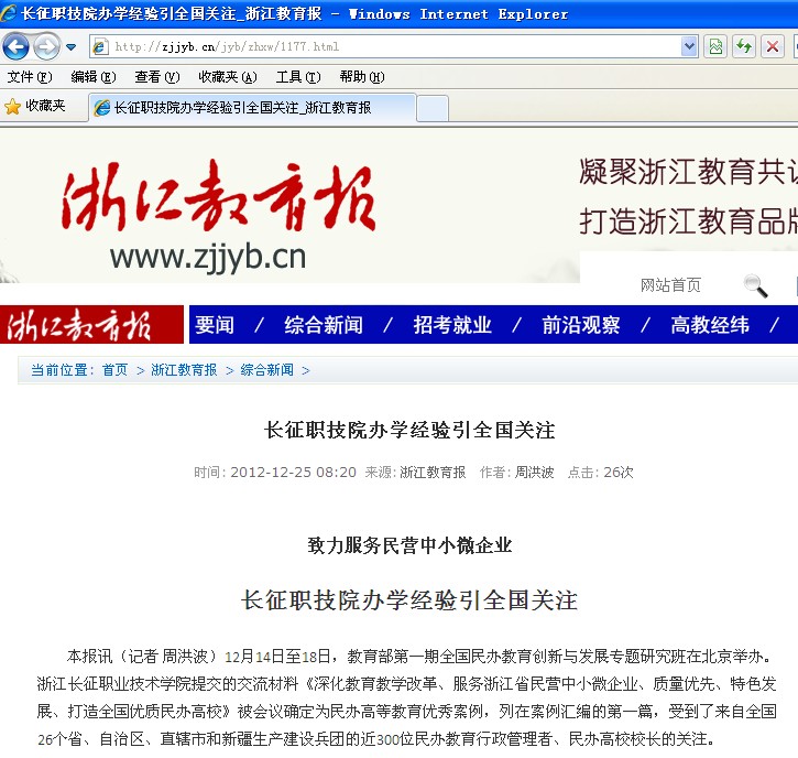 浙江教育报报道“长征职技院办学经验引全国关注”